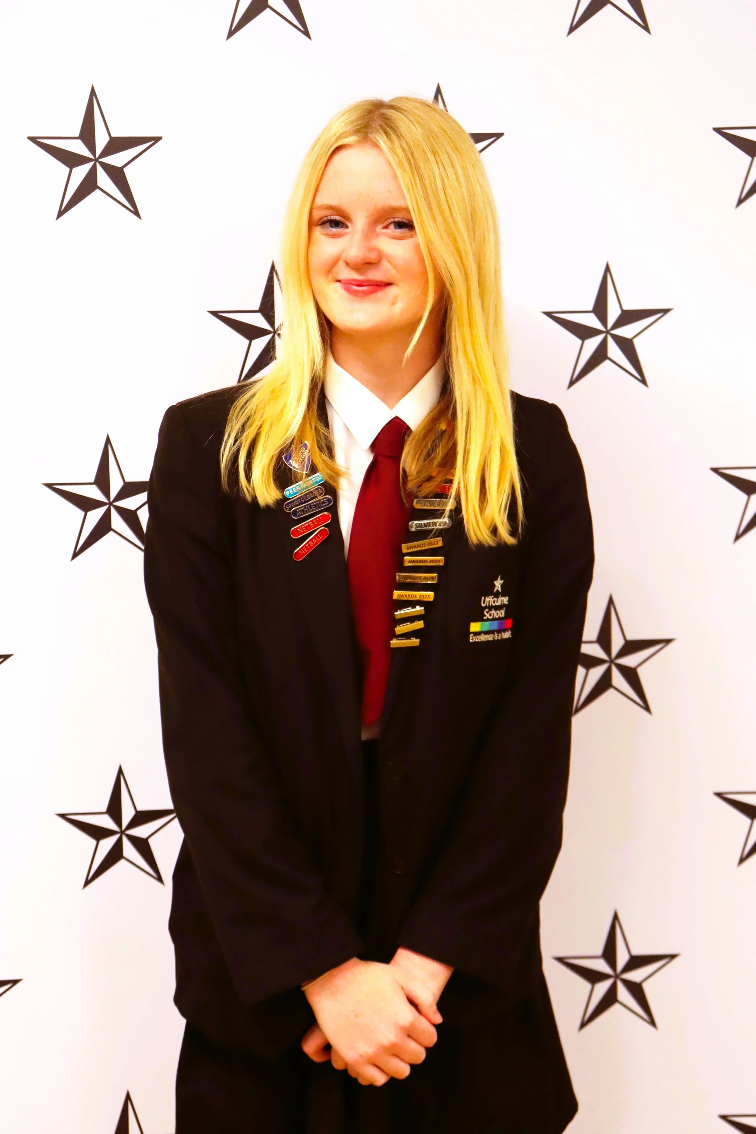 My name is Lucy H, and I am delighted to be Deputy Head Girl at Uffculme School. I am a friendly and approachable person that just wants the best out of everyone by supporting students that need someone to talk to or making school a safe environment for everyone, which we are already working on as a Senior Council. I really enjoy being in the netball team at school because I get to represent Uffculme School and play in a team which is encouraging and supportive. This academic year, I am looking forward to being involved with the school production, School of Rock which has made me love being able to act and create a character.